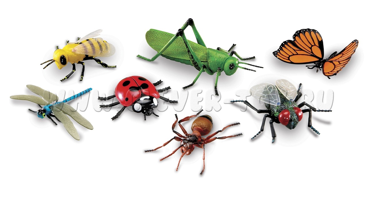 В наборе 7 фигурок насекомых: