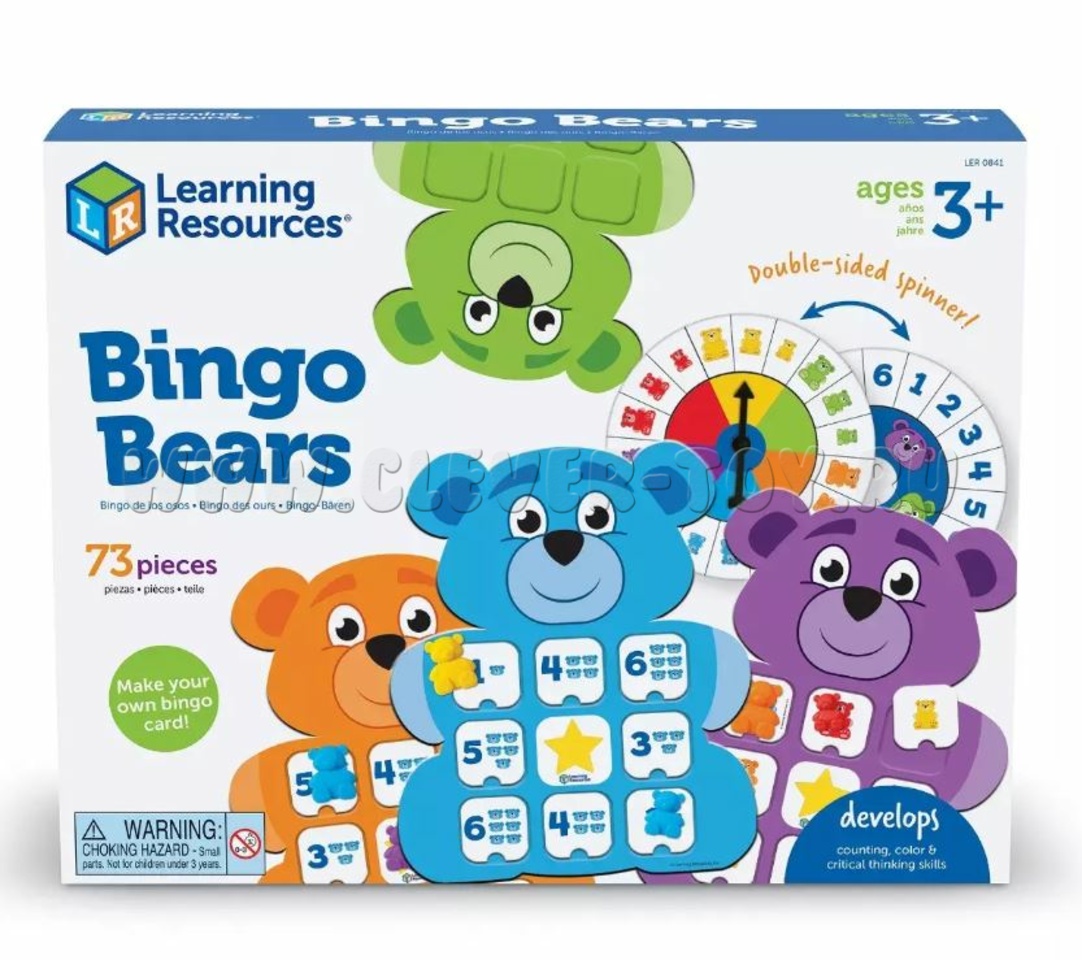 Соотносите фишки на карточках по цифрам, цветам и размерам - тот, кто закроет три плитки подряд в любом направлении и выкрикнет "Бинго!", становится победителем!