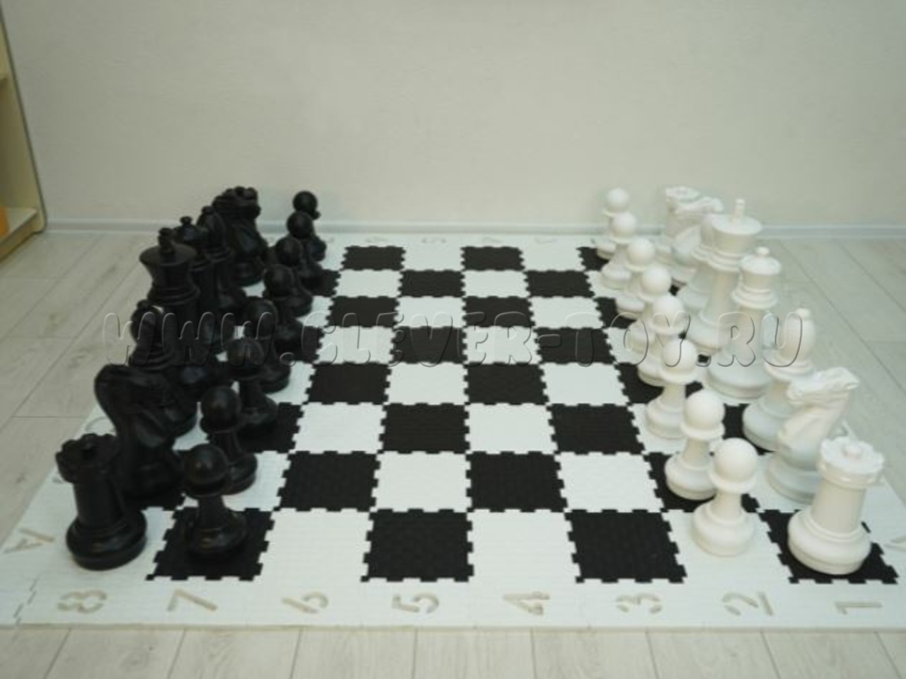 Мягкое напольное покрытие для игры в шахматы.